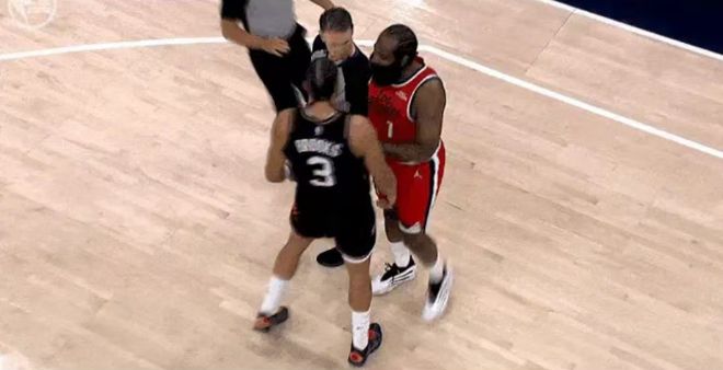 比赛开局哈登与狄龙发生口角,所幸很快被裁判制止。