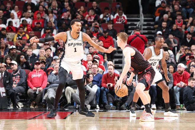 进入末节争夺,赫尔特3分再中,文班3分回应,文班2+1也有,文班上篮再中,马刺一口气将分差追至3分,赫尔特3分止血,卡斯尔2分打进,琼斯2分回应,科内特连砍5分分差追至2分,文班连续命中不讲理三分,最终马刺力克公牛拿下3连胜。
