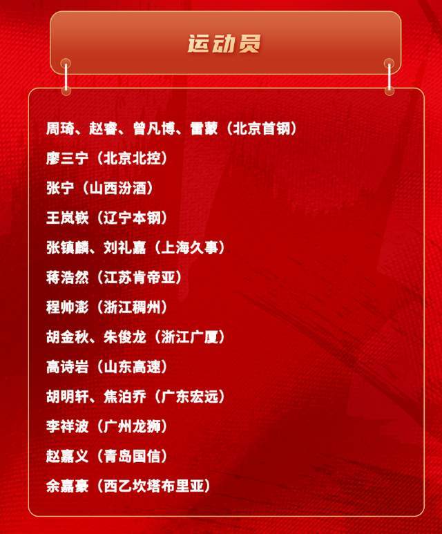 后卫:赵睿、胡明轩、高诗岩、程帅澎、廖三宁、王岚嵚
