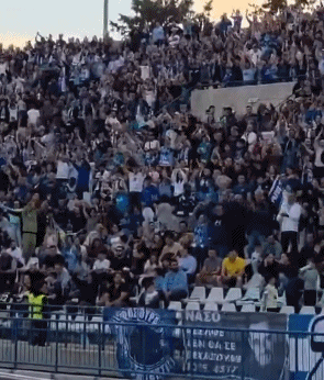卢卡森头球破门,Alphamega球场的6314名观众沸腾!1-0赢球,帕福斯球迷集体起立,有节奏地鼓掌、摇旗呐喊,庆祝史诗级的欧冠胜利。
