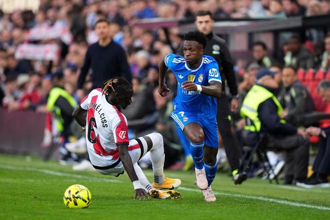 皇马此前一度取得6连胜,包括国家德比2-1力克巴萨,但周中欧冠客场不敌利物浦,阿隆索的执教能力再度遭到质疑。在楚阿梅尼伤缺的情况下,皇马摆出433阵型,姆巴佩、威尼修斯和卜拉欣-迪亚斯领衔三叉戟,贝林厄姆、居莱尔和卡马文加坐镇中场,赫伊森、阿森西奥、卡雷拉斯和客串的巴尔韦德形成四后卫。