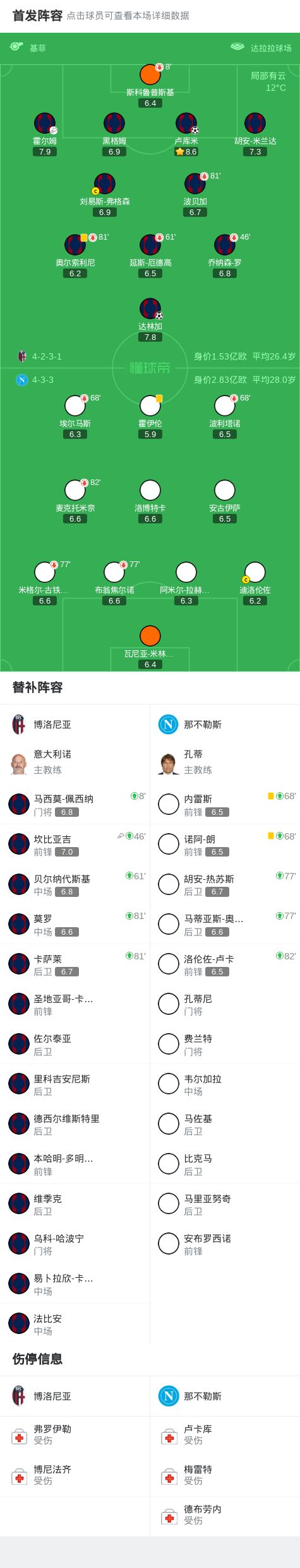 博洛尼亚2-0那不勒斯,达林加破僵,卢库米锁定胜局