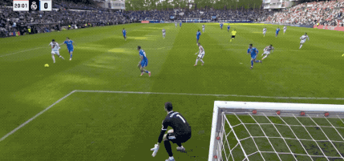 皇马很快还以颜色,第20分钟,姆巴佩下底传中,贝林厄姆做球,维尼修斯的近距离射门,居然被巴塔拉扑了出来。