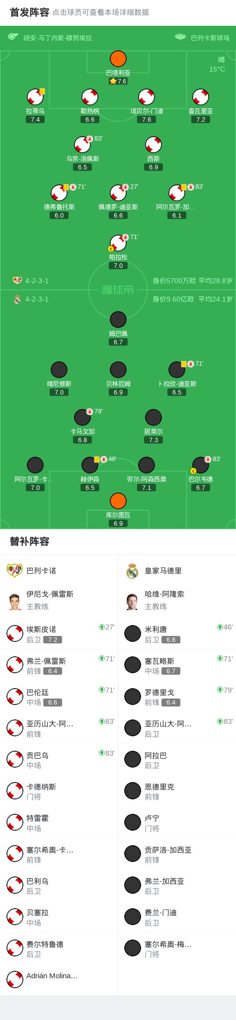 剑南春丨皇马客场0-0巴列卡诺,比赛平淡,巴尔韦德伤退