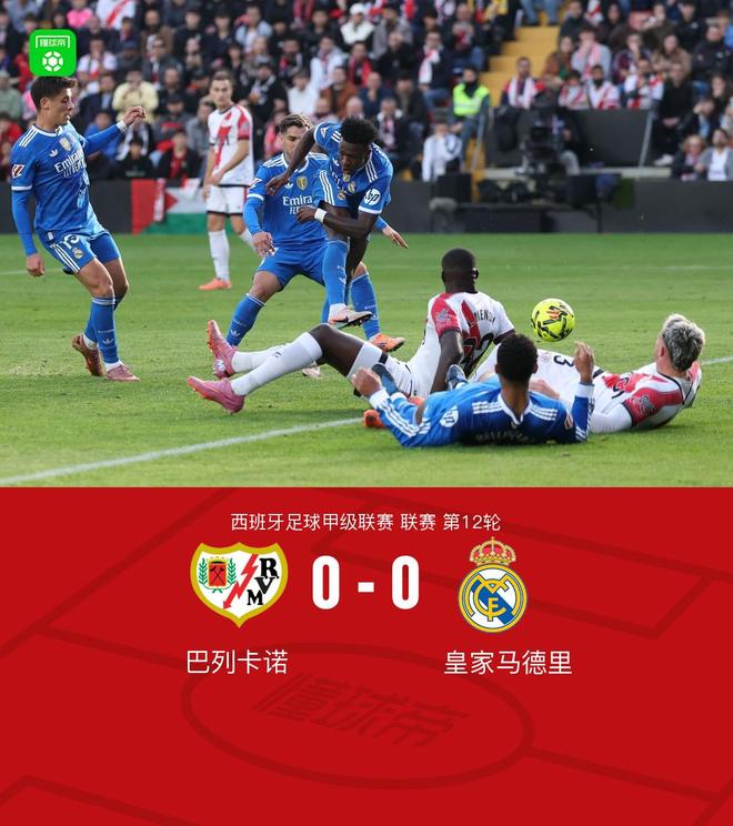 北京时间11月9日西班牙足球甲级联赛 联赛 第12轮,巴列卡诺主场对阵皇家马德里。最终比分巴列卡诺 0-0 皇马。