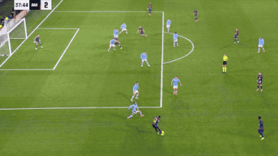 第37分钟,拉什福德45度传中落点精准,莱万多夫斯基调整脚型,轻松将球打进,梅开二度。