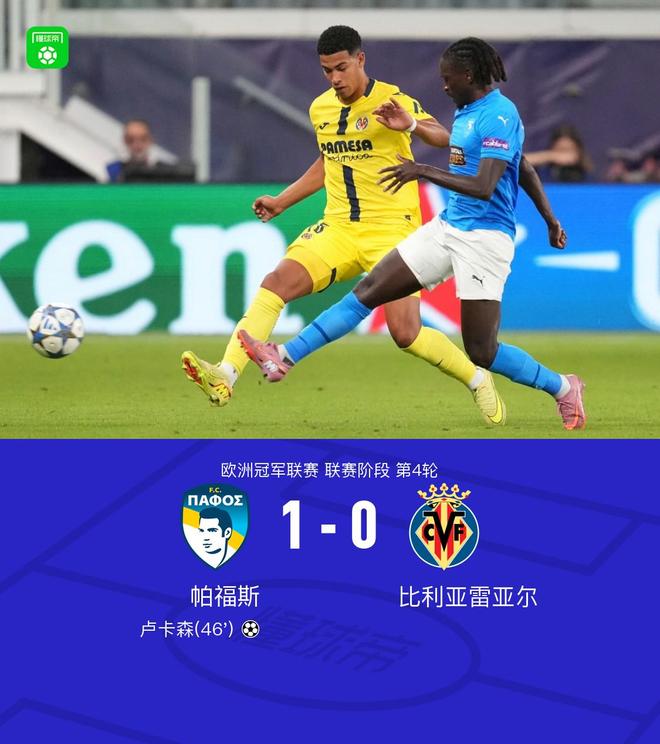帕福斯1-0黄潜斩获队史欧冠首胜,卢卡森制胜,盖伊失单刀
