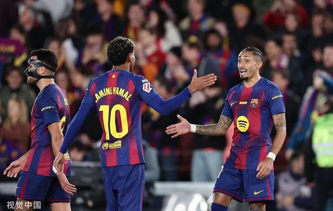 来到比赛中,巴萨开场即统治了比赛;上半场亚马尔边路活跃,而门线上的霍安-加西亚也是发挥稳定。其中费兰一度攻入一粒精彩的头球,但VAR介入因为队友的犯规取消了这个进球。